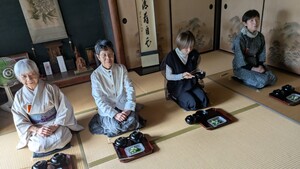 お茶仲間が京都から来庵、茶事を楽しまれました。私は駅の送迎、炭火お越し、写真撮影など少しのお手伝いでした。お茶の楽しみ方は、食事、お酒、生け花、お濃茶、お薄といろいろあるようです。